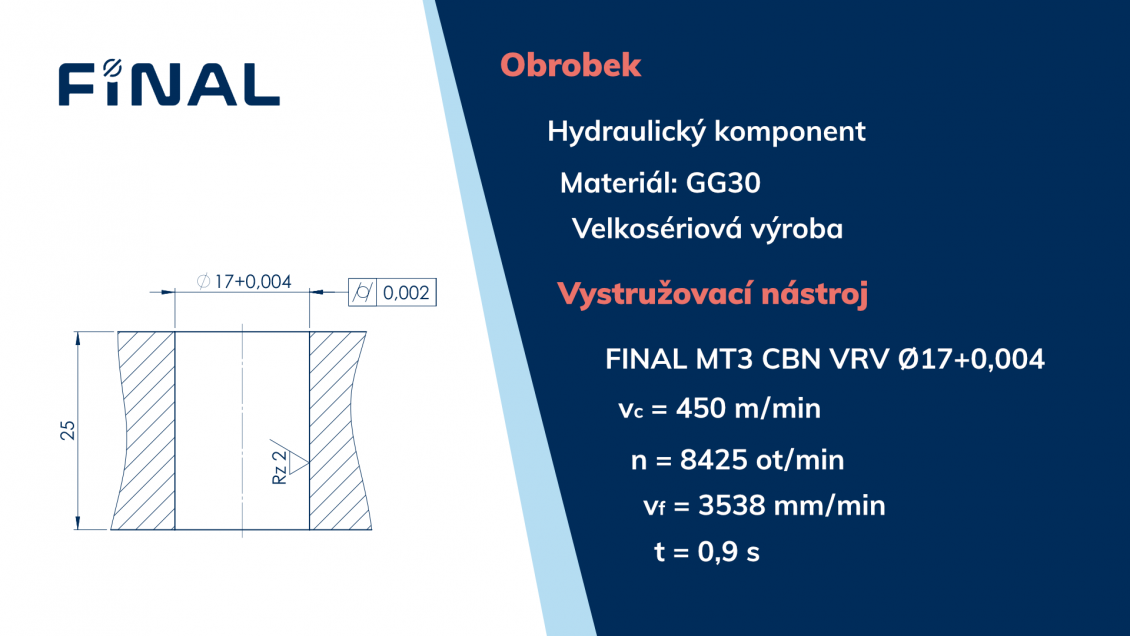 Cílem projektu je dosažení stabilního výrobního procesu při vystružování velmi přesných děr od přesnosti IT4 při výrobě komponentů z tvárných a šedých litin.