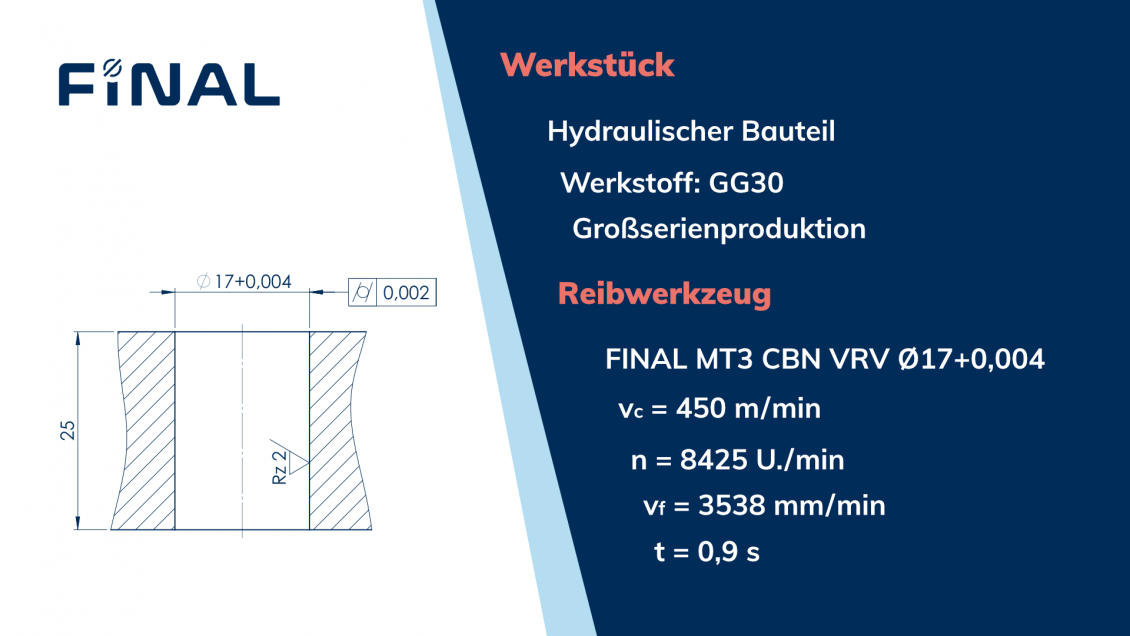 Das Projektziel besteht in der Erzielung eines stabilen Fertigungsprozesses beim Reiben sehr präziser Bohrungen ab IT4 Genauigkeit bei der Herstellung von Bauteilen aus Sphäro- und Grauguss.