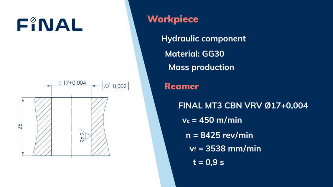 The aim of the project is to achieve a stable production process for reaming high-precision holes from precision IT4 in the production of ductile and grey cast iron components.
